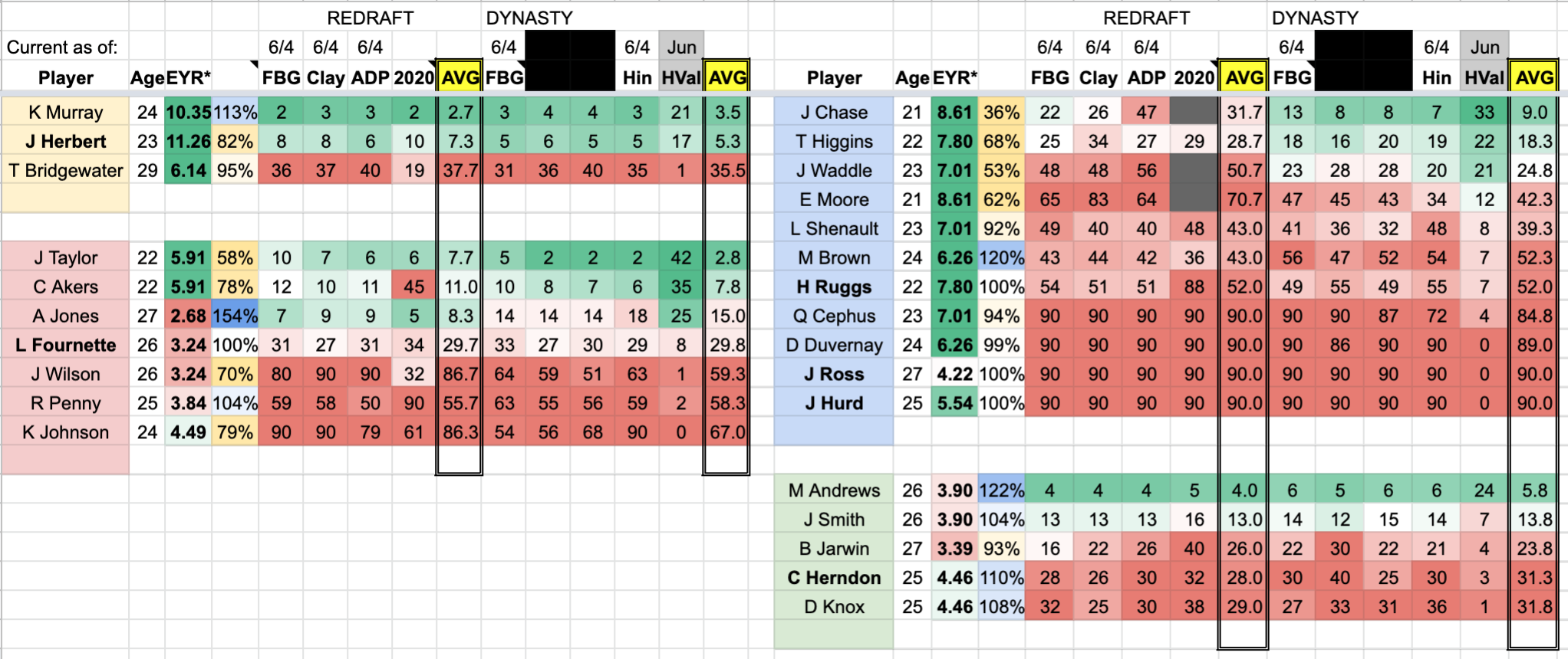These were actually some of the most fun negotiations I’ve had because many of our competitors publish rookie rankings. We knew Pitts would go 1st, I would take Chase at 2, and Najee Harris would go at 3. 1.04 was a wildcard, but the pick wound up going to Javonte Williams, at which point we knew Etienne would go 1.05.